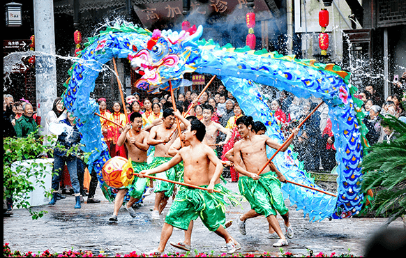 Anju Ancient City is the hometown of Chinese Dragon Dance and has a rich heritage of dragon culture. Dragon boat races were held in this area as early as the ancient dragon festival and there was Dragon Dance performed in the Han Dynasty (202 BC-220 AD). There are more than 20 varieties of Tongliang's Dragon Dance, including Giant Wiggling Dragon, Fire Dragon, Straw Dragon, Vitex Dragon, Bench Dragon, Zheng Dragon, Bamboo Dragon and Lotus Dragon, among which Giant Wiggling Dragon and Fire Dragon are the most characteristic. Tongliang Dragon Dance has become the first batch of national intangible cultural heritage and appeared in many major domestic celebrations such as the 35th, 50th and 60th anniversary of the founding of the People's Republic of China and the 2008 Beijing Olympic Games. It has also been to more than 20 countries and regions such as the United States, Britain and France for cultural exchanges.