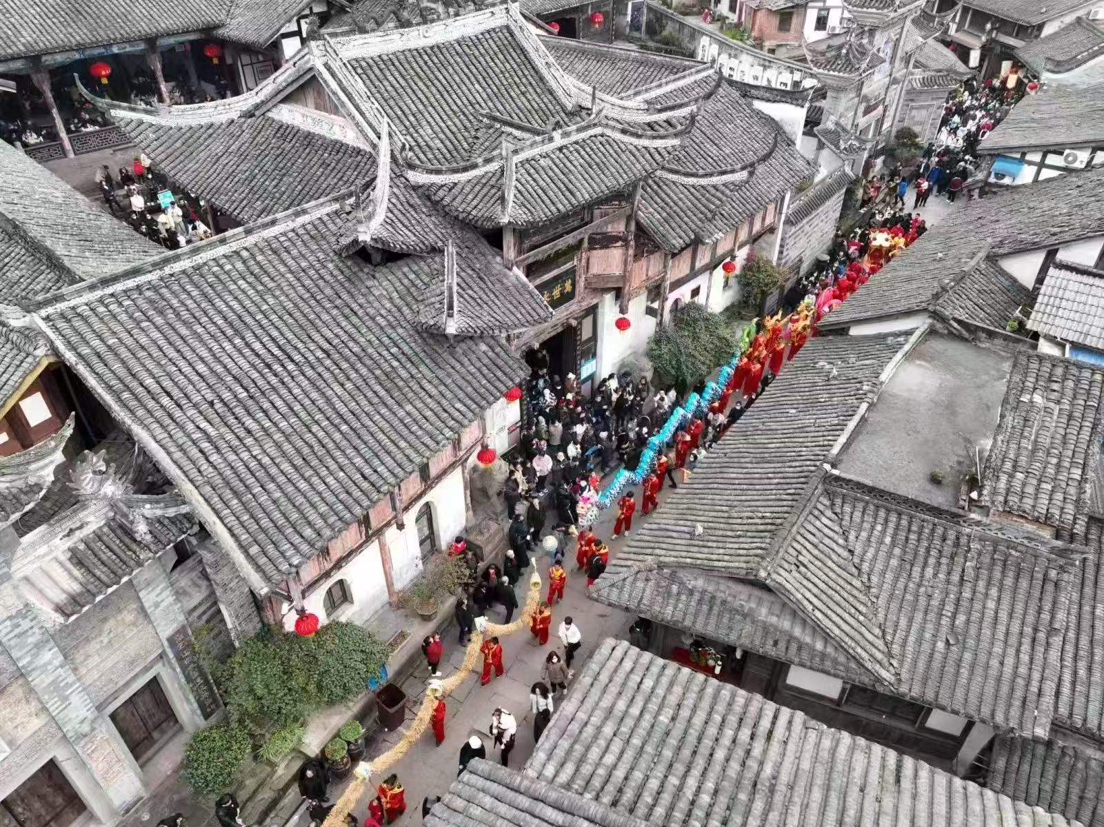 为了全力打造中国乡愁旅游目的地、国家AAAAA级旅游景区,今年端午,安居古城以传统为遵循,龙舟为媒介,举办“万和药房杯”2021安居古城端午龙舟会,此次端午龙舟会除了龙舟竞渡抢江外,还添加了开场龙舞、川江号子、水上特技等特色表演项目,在加入吸睛的现代特技表演的同时,还将原乡民俗与传统非遗结合,让历史和现代形成对冲!传统与时尚相互兼容!