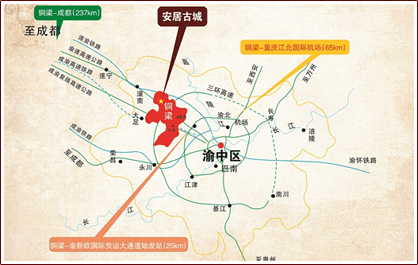 安居自古水路交通发达,向上溯及川西,向下通达重庆、武汉、上海,舢板、双飞燕、安岳船往来穿梭,酒行、盐行、藻扎行、屠宰行、织布行、染行等行会林立,曾是长江上游重要的货物集散地。安居古城距铜梁城区17公里、合川城区23公里、重庆中心城区66公里,渝遂高速公路少云互通口下道车行3.5公里即可到达,是大足石刻、合川钓鱼城、潼南杨氏故居等渝西旅游环线的中心节点,区位优势明显。地处北纬30度的古城自古以来被赋予了无尽的神秘气息。