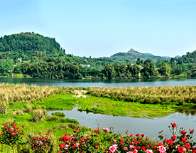 安居古城地处琼江、涪江交汇处,涪江发源于松潘,历千里而入境,与琼江、乌木溪水会于城下,唐人有“危城三面水”之句。九十年代初安居电站建成后,形成了“两江六岸”的独特自然风光。依偎江畔的“安居八景”――化龙钟秀、飞凤毓灵、波仑捧月、石马呈祥、琼花献瑞、紫极烟霞、关溅流杯、圣水晚眺叹为观止;传说凄美的九龙石、鳄鱼石、青蛙石、骆驼石亘古不变、静心庇佑;安居国家湿地公园内,芦苇、草场广袤,水中野鸭嬉戏,空中白鹭成行;琵琶岛四面环水、两江环抱,状如二龙戏珠,风水极佳;黑龙嘴背山面江,与古城隔江相望,风光旖旎。古人有诗赞曰:安居居亦好,有水最清泠;野竹环城翠,由山花入户馨;窜烟三里雾,渔火一江里;愁至醪堪兑,频浇不待醒。