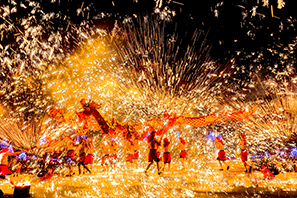 安居古城是中国的龙舞原乡,龙文化的底蕴十分厚重,早在远古的祭龙日在该地就开始赛龙舟,汉代就有龙舞的表演。铜梁龙舞主要包括大儒龙、火龙、稻草龙、黄荆龙、板凳龙、正龙、竹梆龙、荷花龙等二十多个品种,尤以大儒龙和火龙最具特色。作为国家级首批非物质文化遗产,铜梁龙舞曾先后参加了建国35周年、50周年、60周年、2008年北京奥运会等国内重大庆典活动,还远赴美国、英国、法国等二十多个国家和地区开展文化交流。